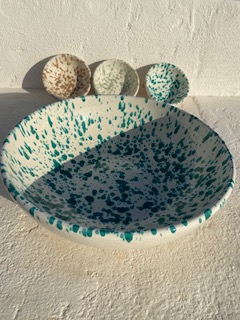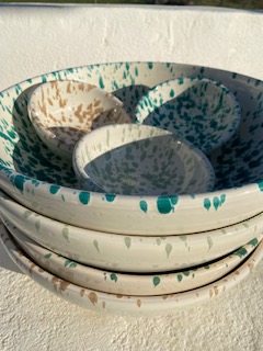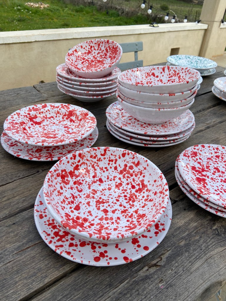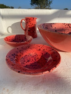 Je suis en contact avec de nombreux artisants dans les Pouilles, j’achète des ensembles, de nouvelles pièces à chaque saison pour vous proposer des modèles originaux le plus souvent possible. L’idéal ce sont les pré-commandes, vous avez vu une pièce qui vous plait, suite à votre appel et l’envoi de photos vous souhaitez commander ? Aucun problème, vous choisissez les pièces et je vous envoie un devis. Vous le validez et voilà. La commande est en route !!! Si les pièces demandées ne sont plus disponibles, je vous indique le délai nécessaire pour les obtenir (en pré-commande) et si vous désirez un modèle de la nouvelle collection avant tout le monde la pré-commande est là aussi … Rien de très compliqué !!! Carafe, assiettes plates, creuses ou à dessert, coppe de 20, 30 ou 40cm, tasses, huiliers, verres ou une décoration unique … et pourquoi pas une magnifique dame Jeanne pour votre décoration intérieure ou le jardin ? Je peux tout avoir dans un délai raisonnable selon la demande.