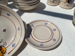 Mes trouvailles viennent de pleins d’endroits différents dans les Pouilles, l’artisan du quartier, le céramiste que l’on m’a conseillé, les quartiers dédiés à la céramique qui regroupent de nombreux ateliers, le chez l’habitant et aussi les marchés des antiquaires locaux dans les paesini. Cela me prend beaucoup de temps, je choisis srupuleusement les pièces que je vais ramener avec moi pour vous. Le “Made in Italy” est important oui, mais le “Made in Puglia” est ma garantie. Des objets du quotidien, des objets faits à la main dans des conditions de travail saines et respectables (point qu’il est important de préciser dans le monde de la céramique en Europe et surtout audelà).